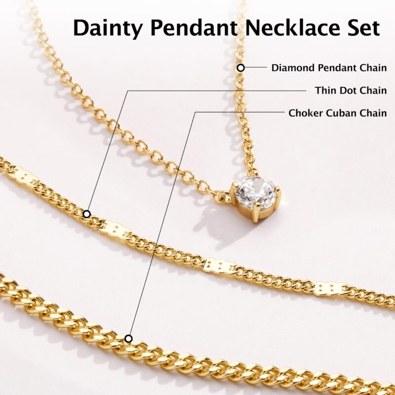WomenGifts Layered Gold Necklaces for Women, 14K Gold Sterling Silver Plated Dainty Pendant Necklace Set with Cubic Zirconia Circle Style 1